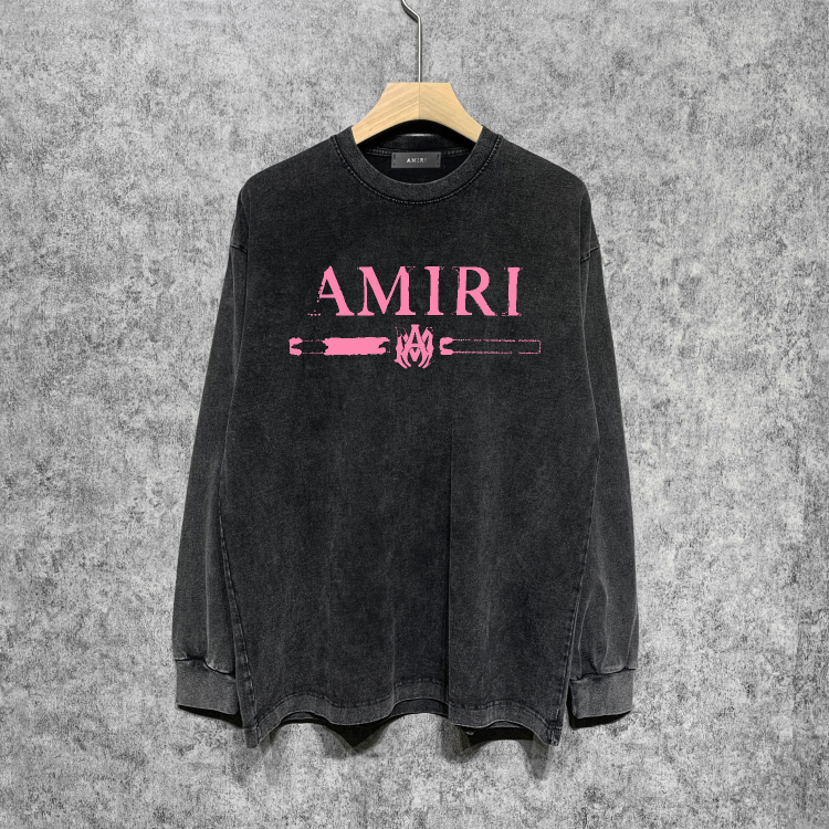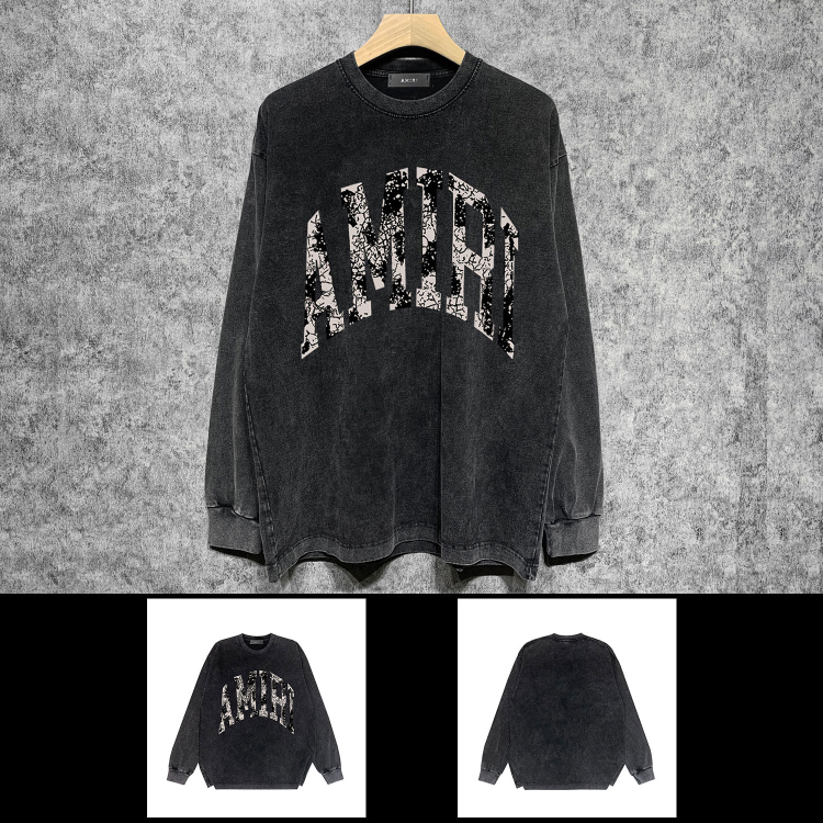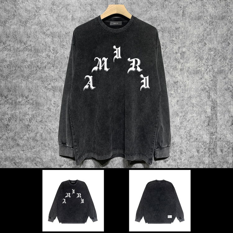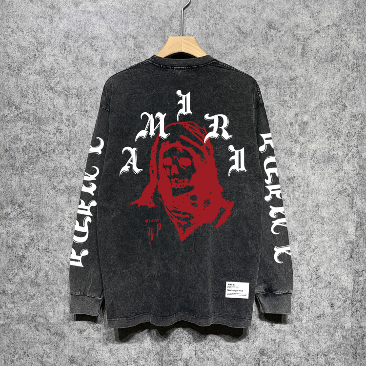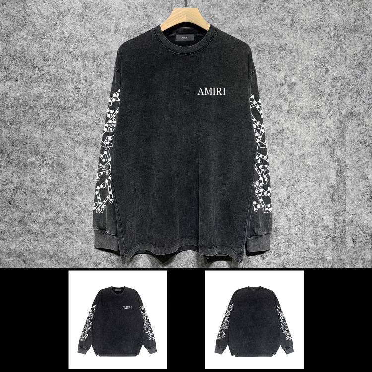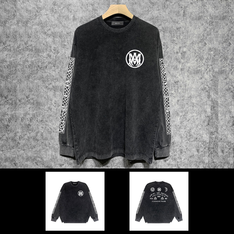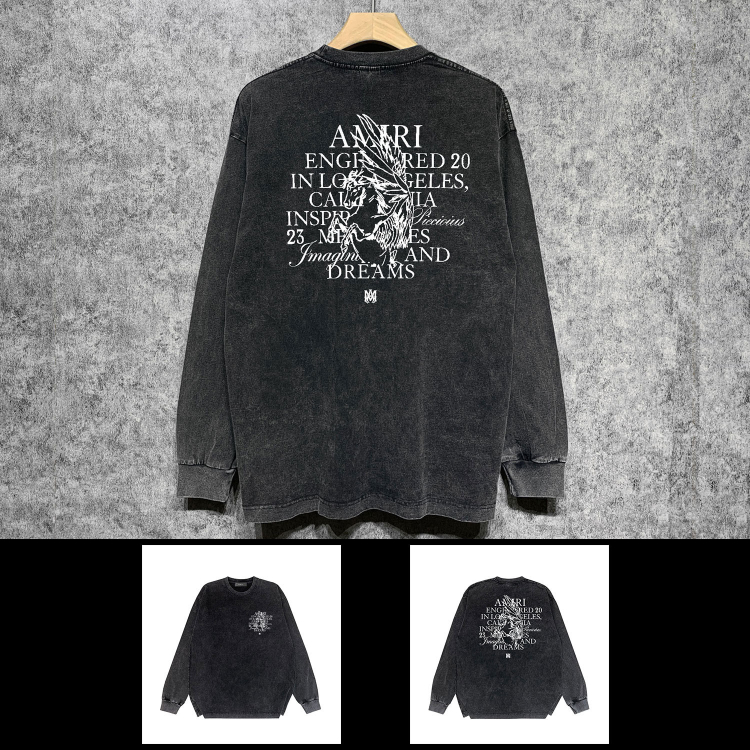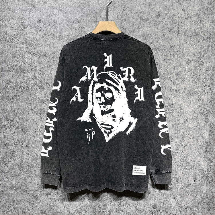 AMIRI Washed Distressed Print Casual Long-Sleeve T-Shirt-5520