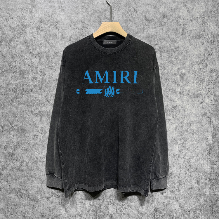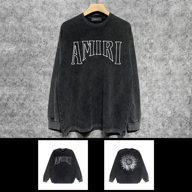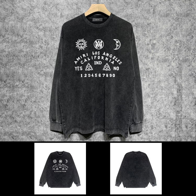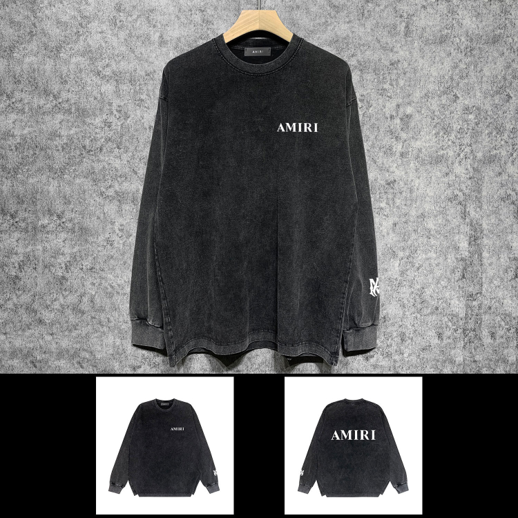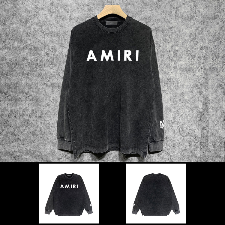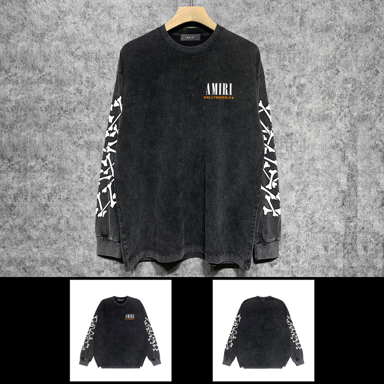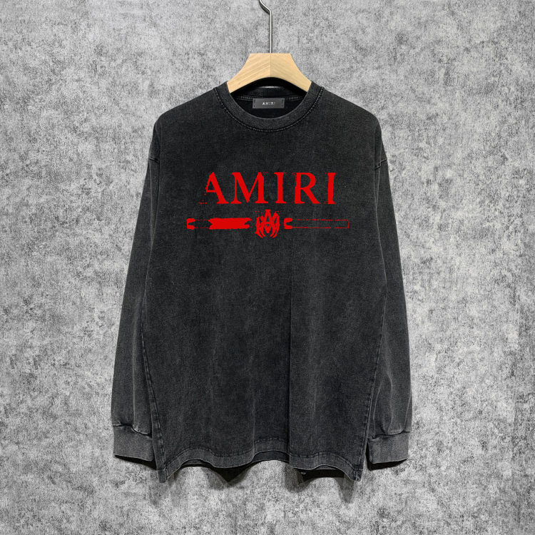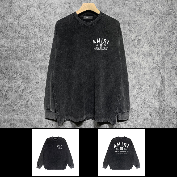 AMIRI Washed Distressed Print Casual Long-Sleeve T-Shirt-5520