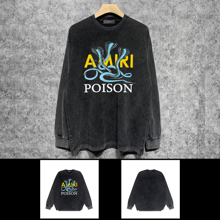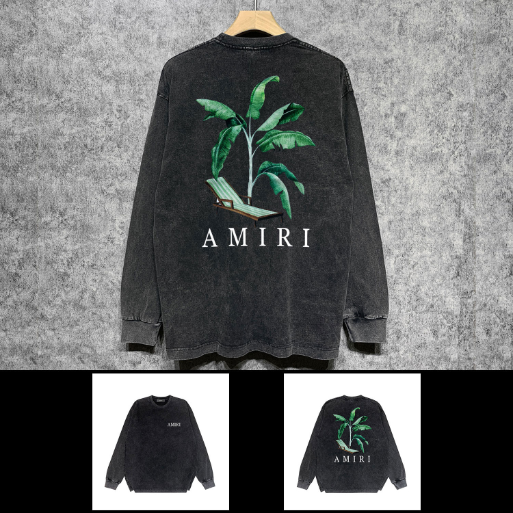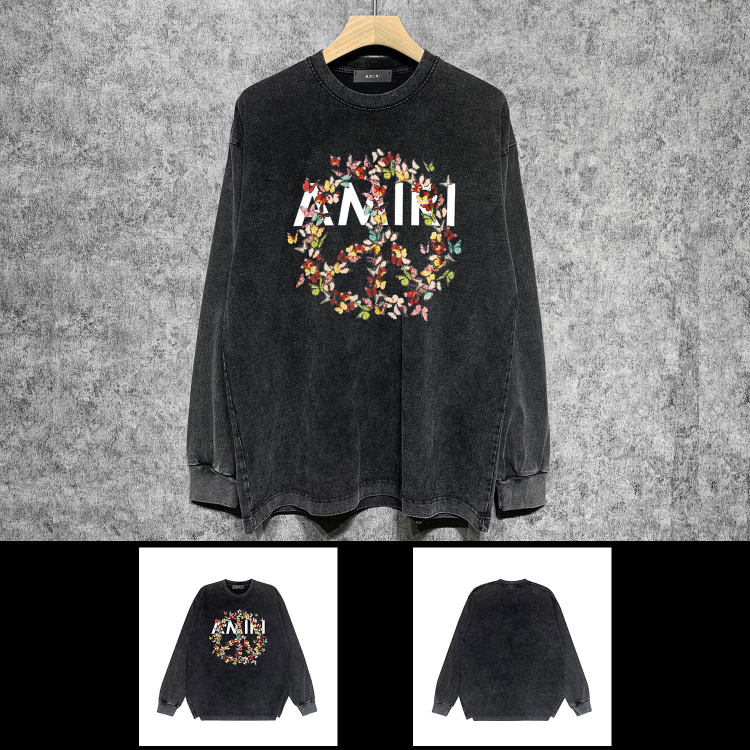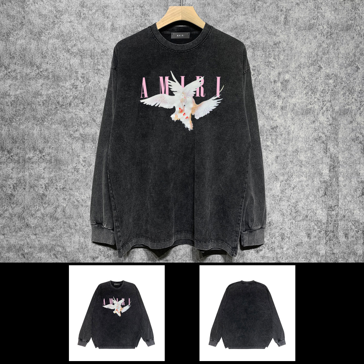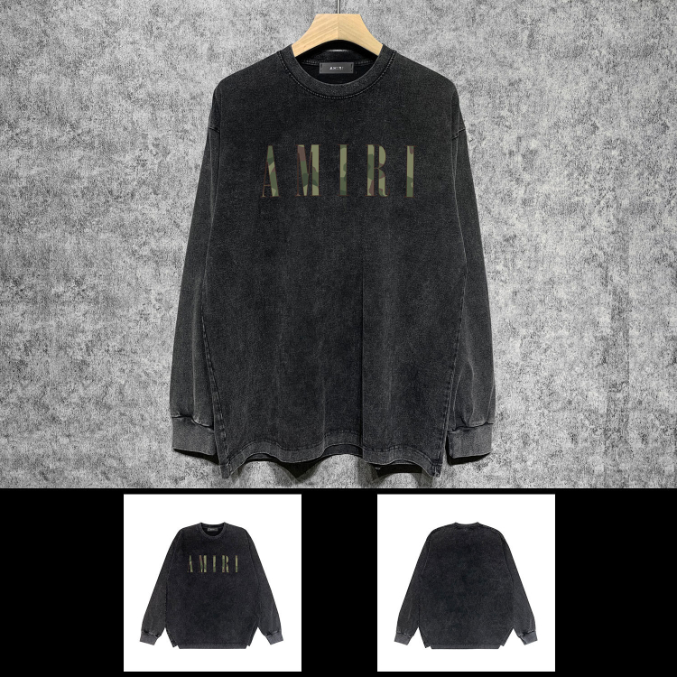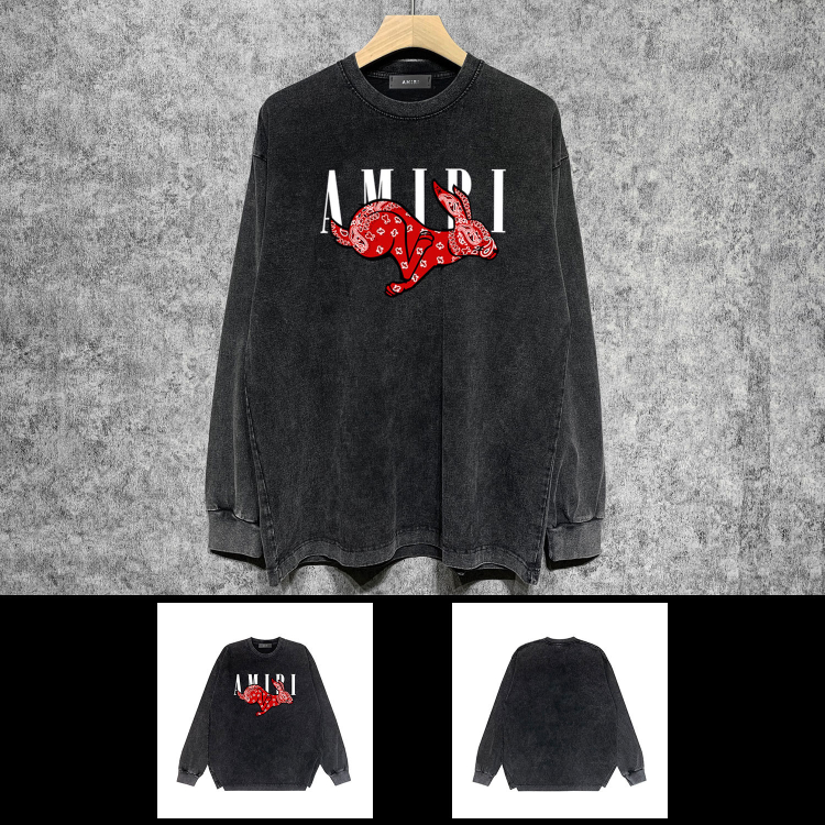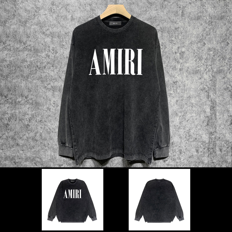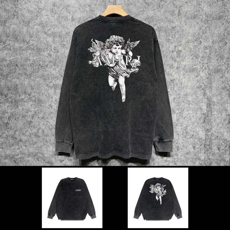 AMIRI Washed Distressed Print Casual Long-Sleeve T-Shirt-5520
