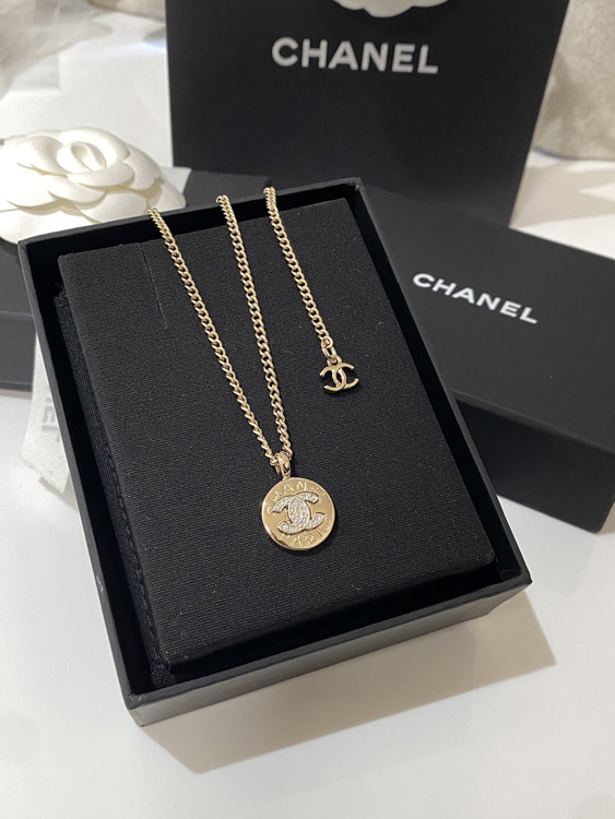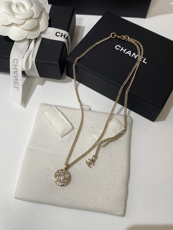 Chanel light gold gold and silver color matching round necklace-3593