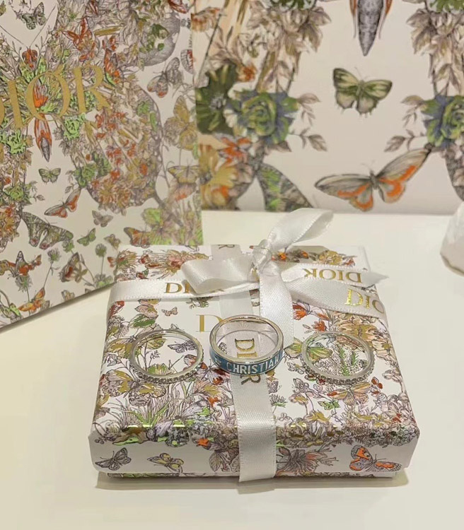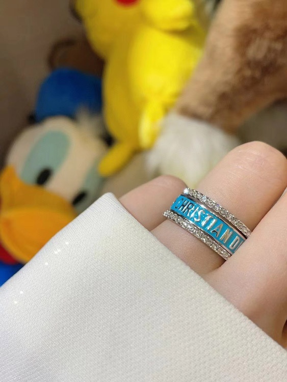 Home > Dior gold letter blue enamel diamond ring set three-piece set-3710
