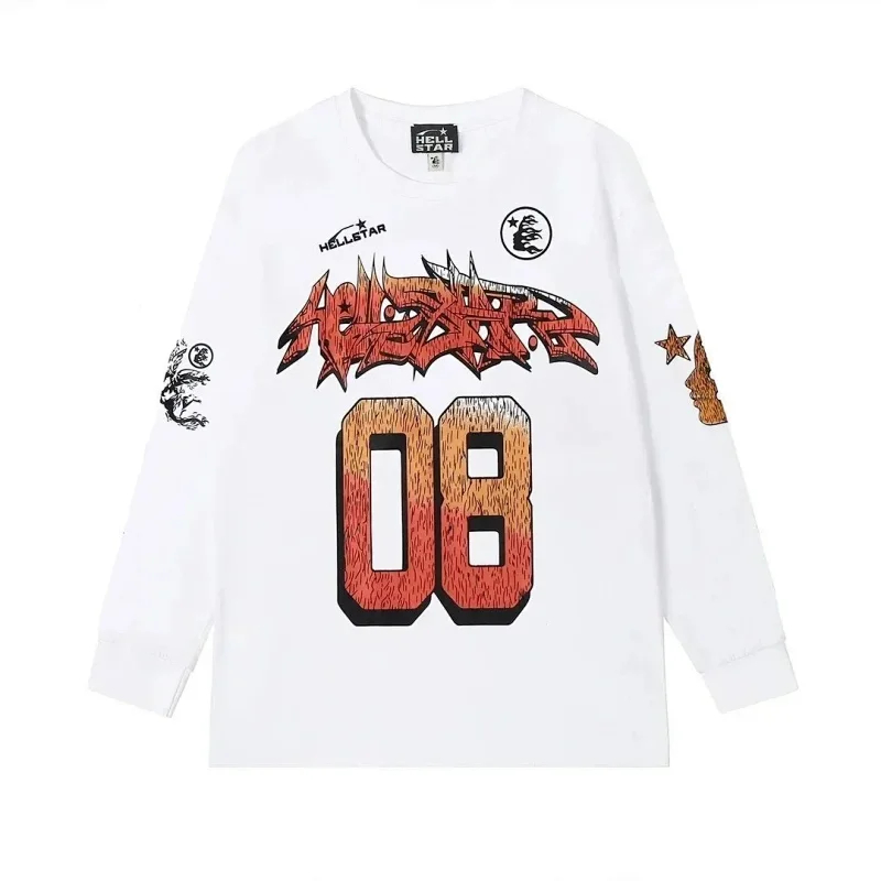Ins same style Hell Star Retro Print Men's and Women's Loose Casual Long Sleeve T-shirt-2514