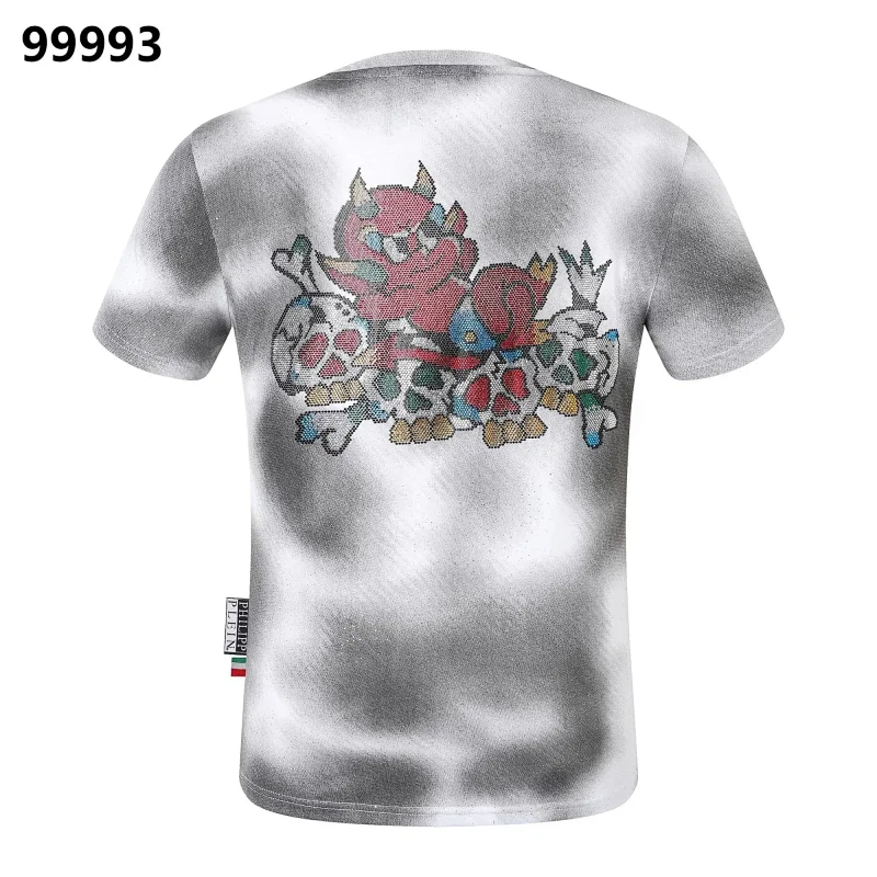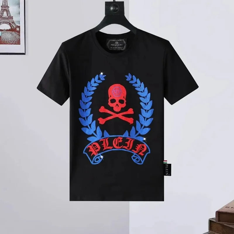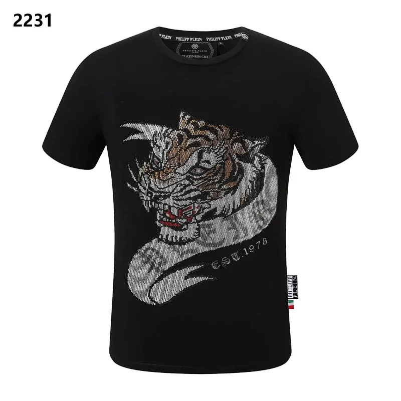 PLEIN Medusa Tiger Head Printed Diamond Short Sleeve T-Shirt-1982