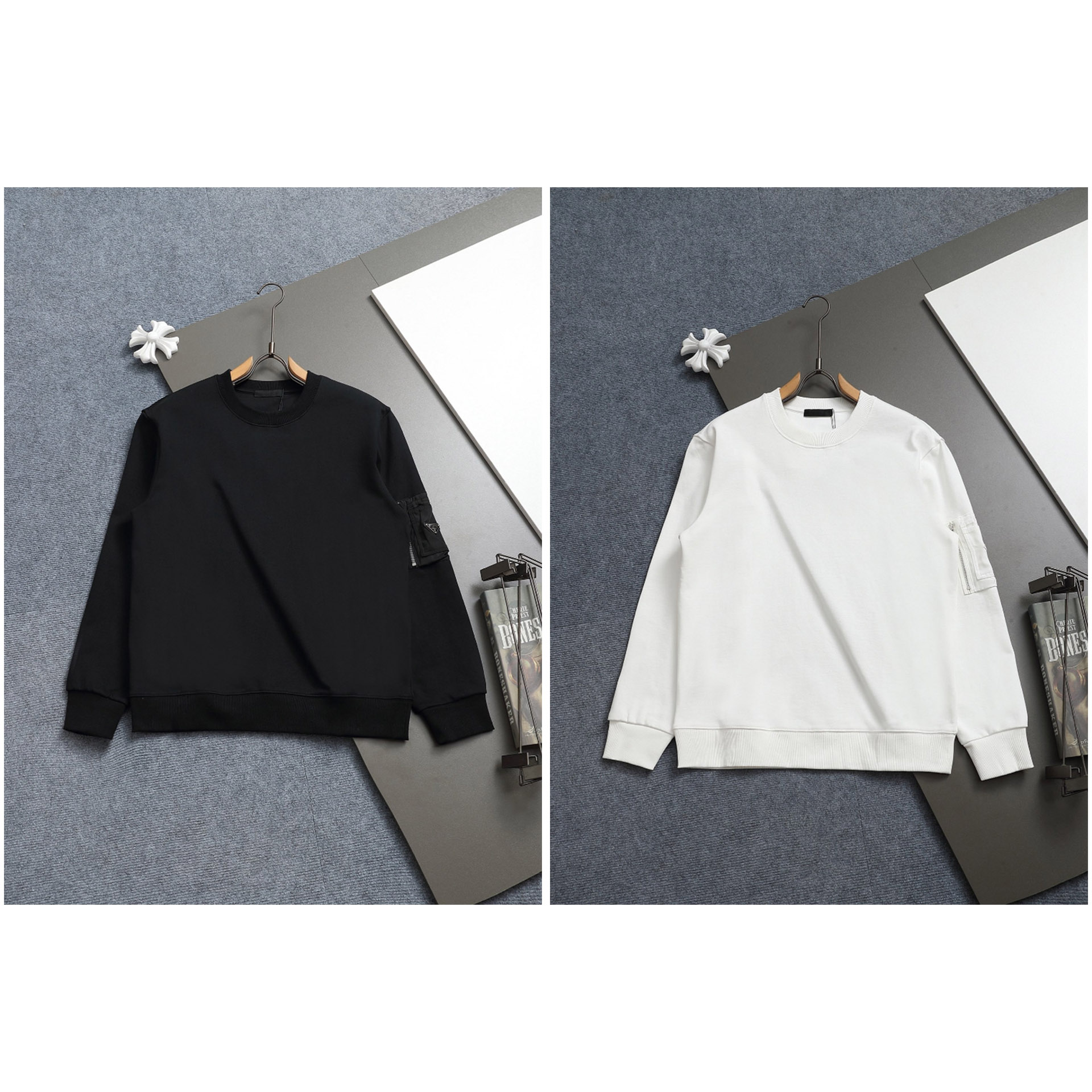 Prada new loose-fitting sweatshirt with zippered sleeve pockets and metal triangle logo-5323