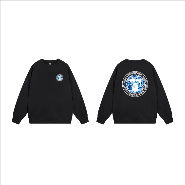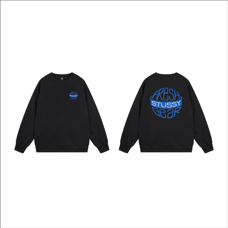 Stussy classic logo print black 8-ball long-sleeved crewneck sweatshirt-5278