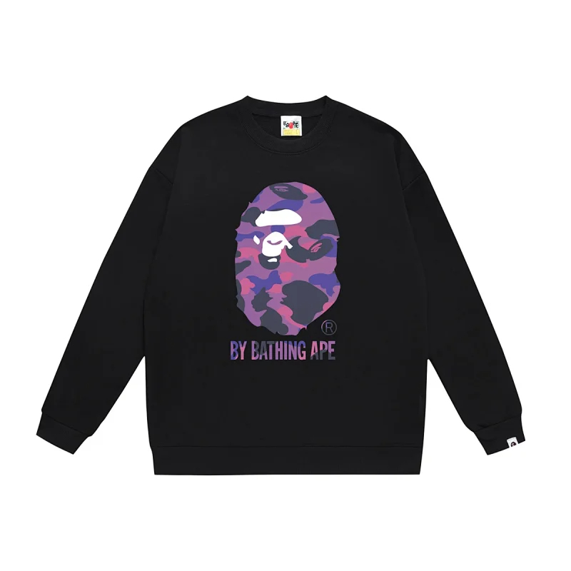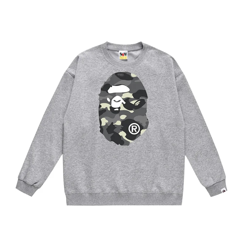 A BATHING APE BAPE Camouflage Letter Ape Print Crewneck Sweatshirt-5145