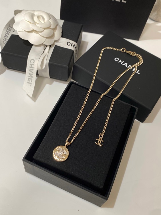 Chanel light gold gold and silver color matching round necklace-3593