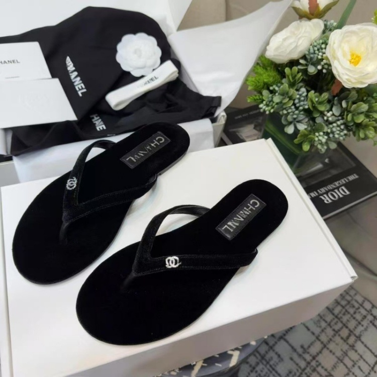 Chanel rhinestone and pearl embellished velvet flat thong sandals-5697