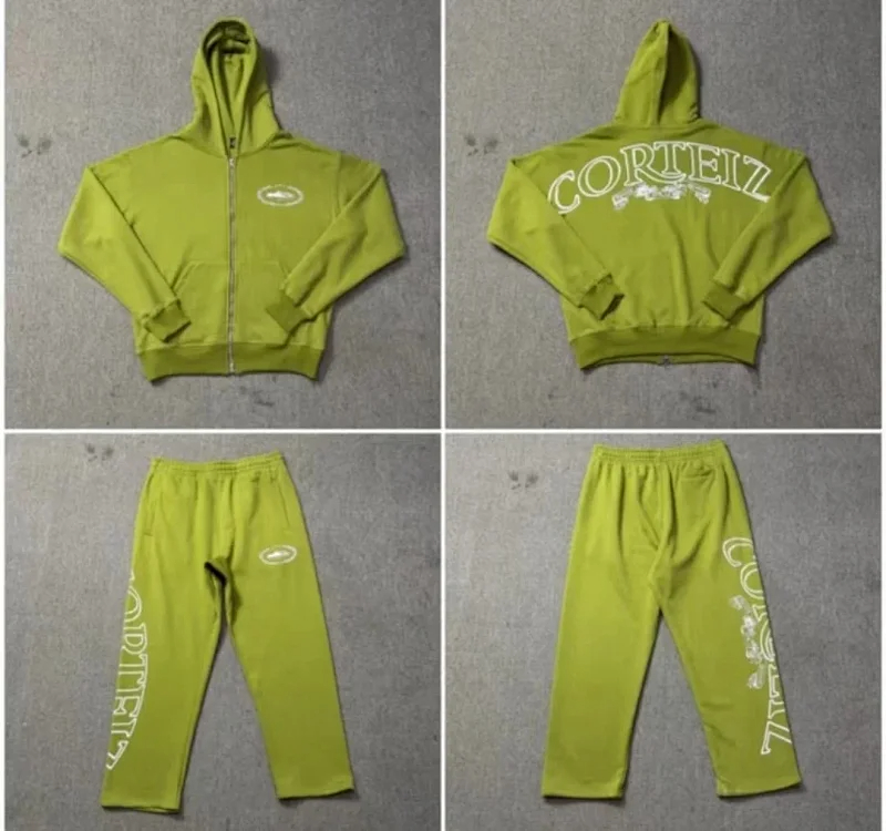 Corteiz Hooded Long Sleeve Zipper Sweatshirt and Sweatpants-4411