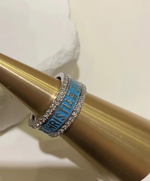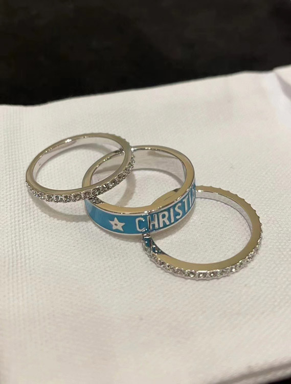 Home > Dior gold letter blue enamel diamond ring set three-piece set-3710