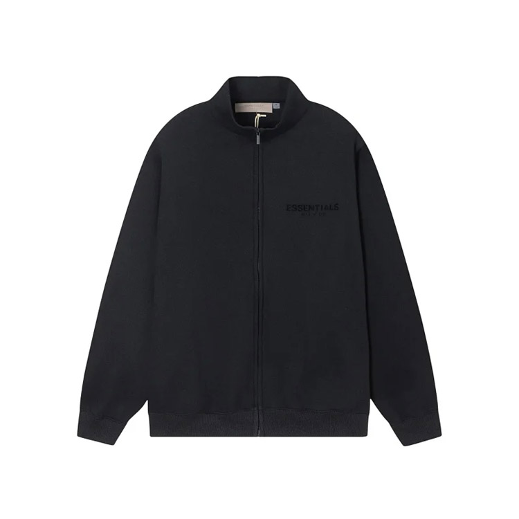 Essentials solid color letter print zipper long sleeve coat jacket-4366