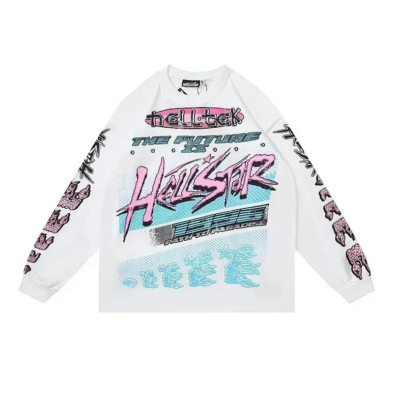 Ins same style Hell Star Retro Print Men's and Women's Loose Casual Long Sleeve T-shirt-2514