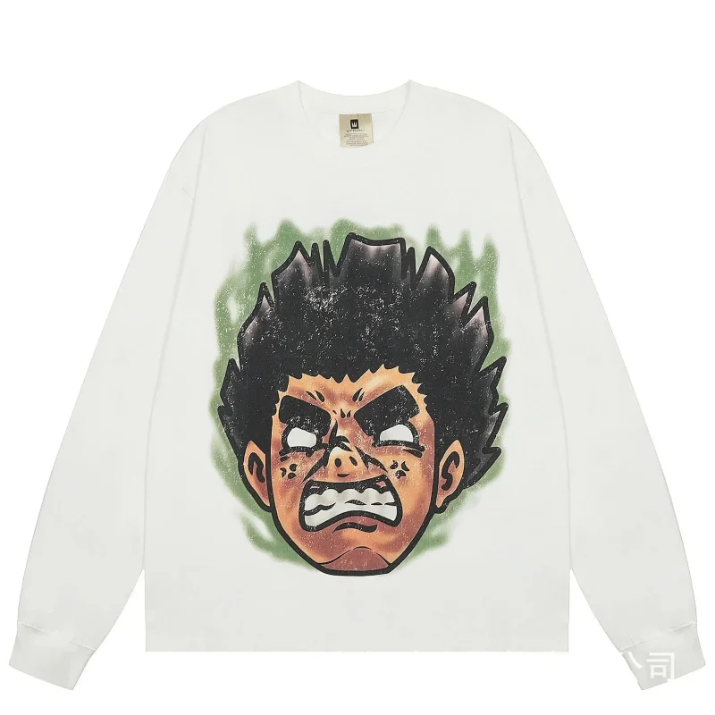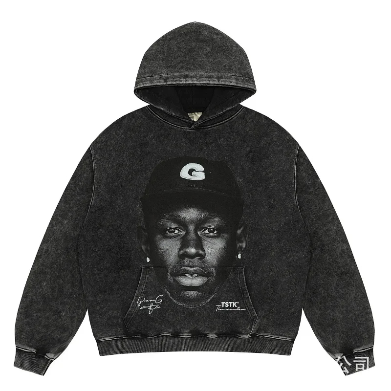 KANYE I told you the same retro washed and distressed hooded sweatshirt with prints Kanye West(39 styles)-2142