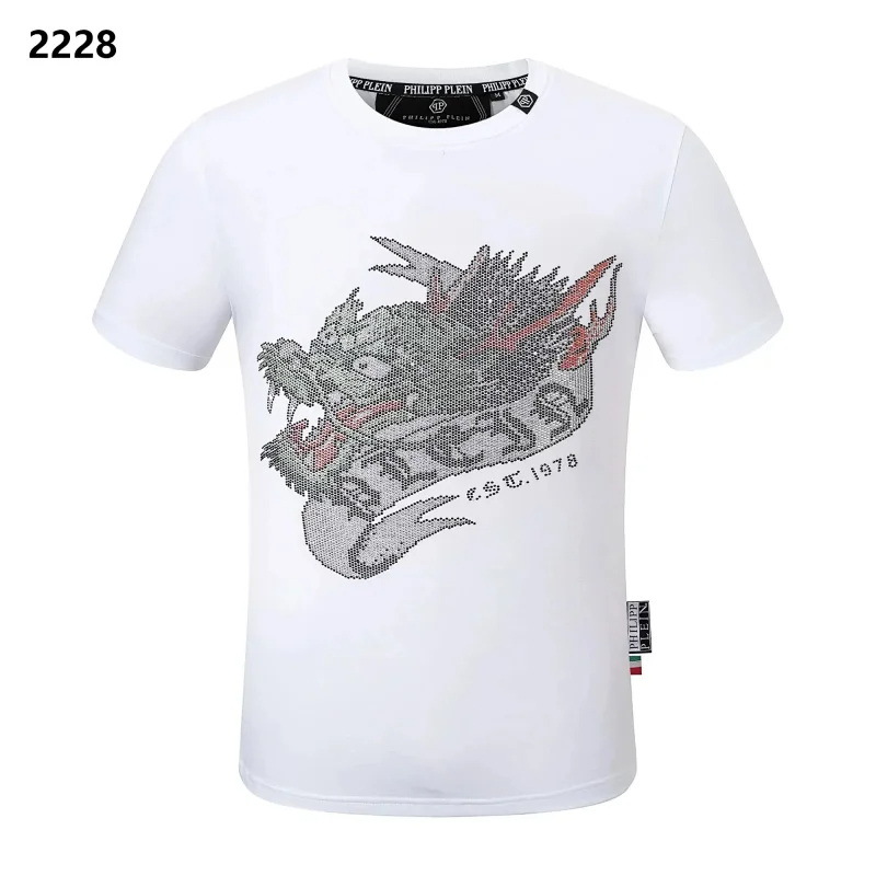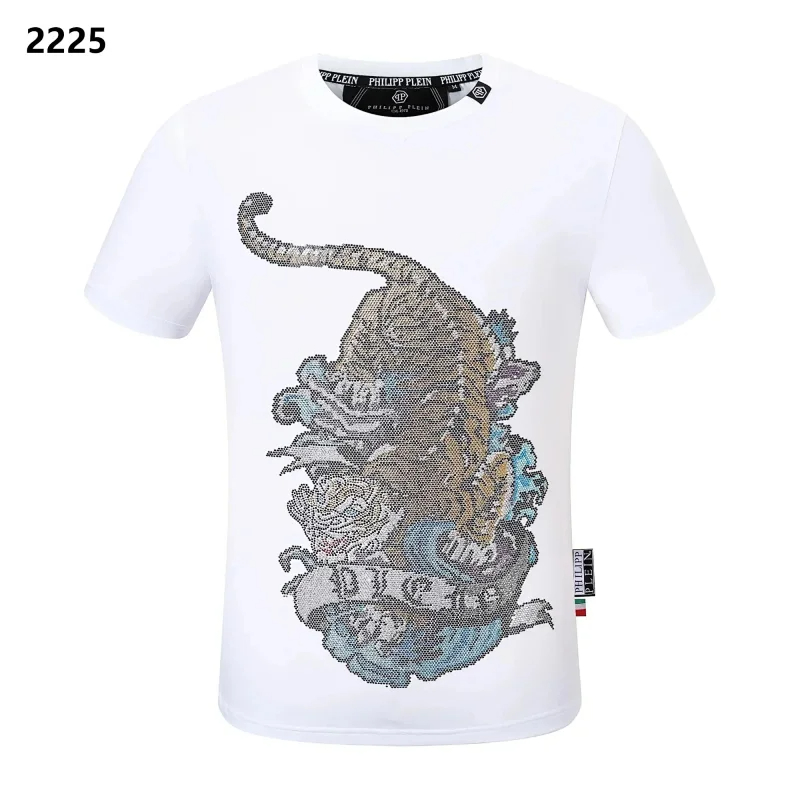 PLEIN Medusa Tiger Head Printed Diamond Short Sleeve T-Shirt-1982