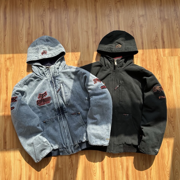 Supreme x Fox Racing collaborative hooded denim jacket-5924